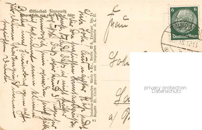 73822835 alte Postkarte Zinnowitz Ostseebad Fliegeraufnahme postalisch gelaufen Erhaltung siehe scans [WerneD78] KatCode: 11110013059107
