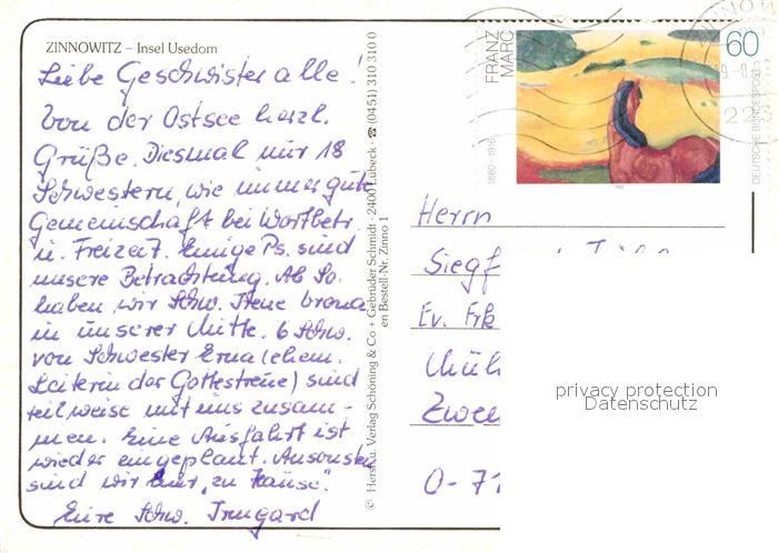 72888825 alte Postkarte Zinnowitz Ostseebad Fliegeraufnahme postalisch gelaufen Erhaltung siehe scans [AndreD76] KatCode: 11110013059107