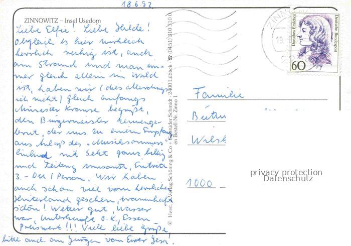 74141535 ZINNOWITZ Ostseebad Fliegeraufnahme postalisch gelaufen Erhaltung siehe scans [FriedD77] alte Postkarte Frie Katcode 11110013059107