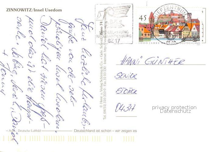 72986717 alte Postkarte Zinnowitz Ostseebad Fliegeraufnahme mit Strand postalisch gelaufen Erhaltung siehe scans [LiesaD40] KatCode: 11110013059107