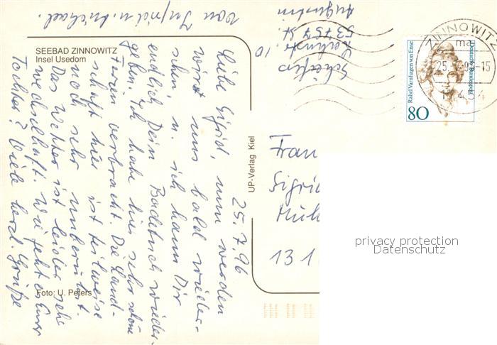 73776328 alte Postkarte Zinnowitz Ostseebad Fliegeraufnahme Usedom postalisch gelaufen Erhaltung siehe scans [LiesaD40] KatCode: 11110013059107