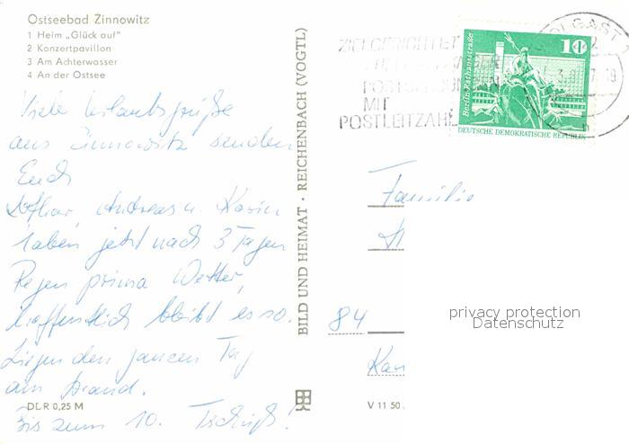 72643469 alte Postkarte Zinnowitz Ostseebad Heim Glueck auf Konzertpavillon Am Achterwasser Ostseeblick postalisch gelaufen Erhaltung siehe scans [WerneD78] KatCode: 11110013059107