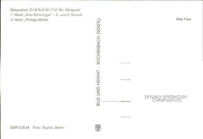 72356132 Zinnowitz Ostseebad Hotel Otto Schmirgal Strand Hotel Philipp Mueller postalisch nicht gelaufen Erhaltung siehe scans KatCode: 11110013059107