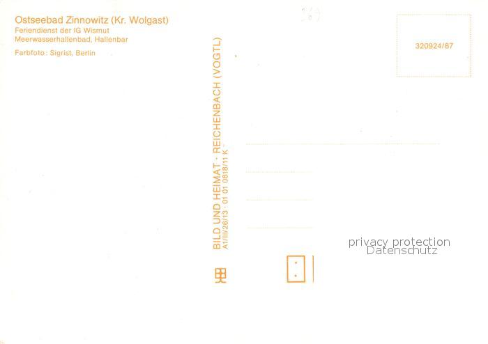 73568896 Zinnowitz Ostseebad IG Wismut Hallenbar postalisch nicht gelaufen Erhaltung siehe scans [PaolaD17] KatCode: 11110013059107
