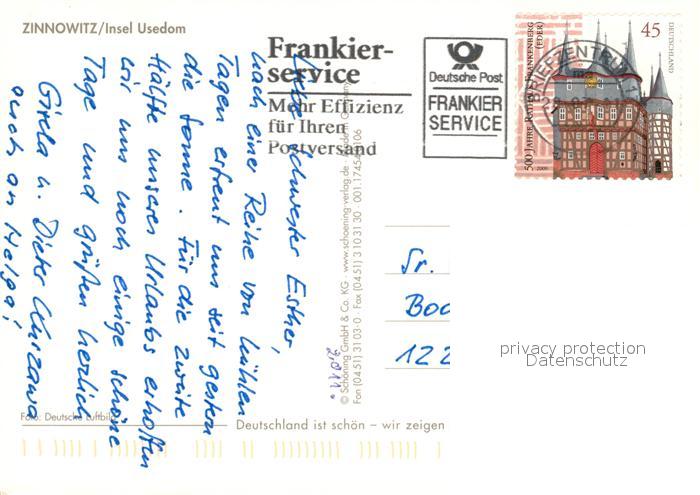 73128275 alte Postkarte Zinnowitz Ostseebad Insel Usedom Fliegeraufnahme postalisch gelaufen Erhaltung siehe scans [PaolaD17] KatCode: 11110013059107