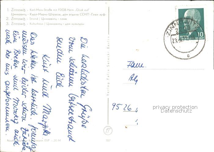 72455904 alte Postkarte Zinnowitz Ostseebad Karl Marx Strasse Strand Kulturhaus postalisch gelaufen Erhaltung siehe scans KatCode: 11110013059107