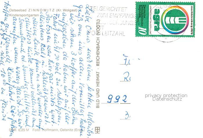 73612716 alte Postkarte Zinnowitz Ostseebad Kindersportgarten postalisch gelaufen Erhaltung siehe scans [WerneD78] KatCode: 11110013059107