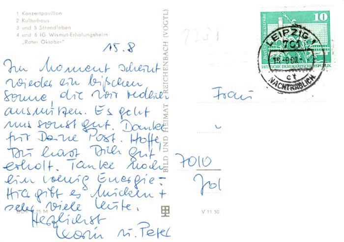 73879455 alte Postkarte Zinnowitz Ostseebad Konzertpavillon Kulturhaus Strandleben IG Wismut Erholungsheim Roter Oktober postalisch gelaufen Erhaltung siehe scans [FriedD77] KatCode: 11110013059107