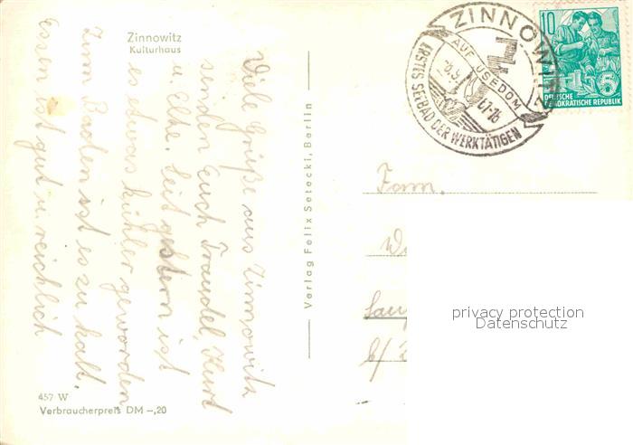 72703607 alte Postkarte Zinnowitz Ostseebad Kulturhaus postalisch gelaufen Erhaltung siehe scans [FriedD77] KatCode: 11110013059107