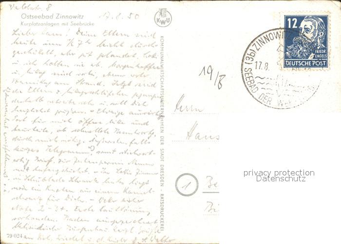 72274856 alte Postkarte Zinnowitz Ostseebad Kurplatzanlagen mit Seebruecke postalisch gelaufen Erhaltung siehe scans KatCode: 11110013059107