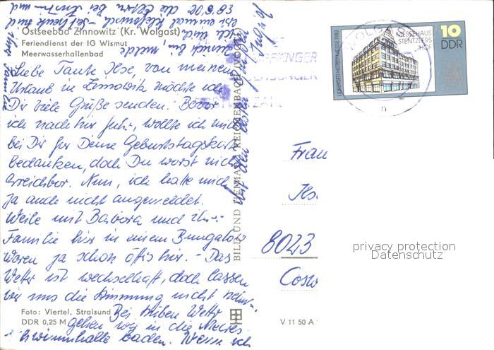 72404613 alte Postkarte Zinnowitz Ostseebad Meerwasserhallenbad postalisch gelaufen Erhaltung siehe scans KatCode: 11110013059107