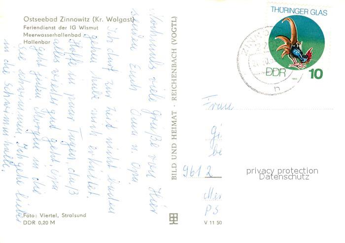 73085360 alte Postkarte Zinnowitz Ostseebad Meerwasserhallenbad Hallenbar postalisch gelaufen Erhaltung siehe scans [FriedD77] KatCode: 11110013059107