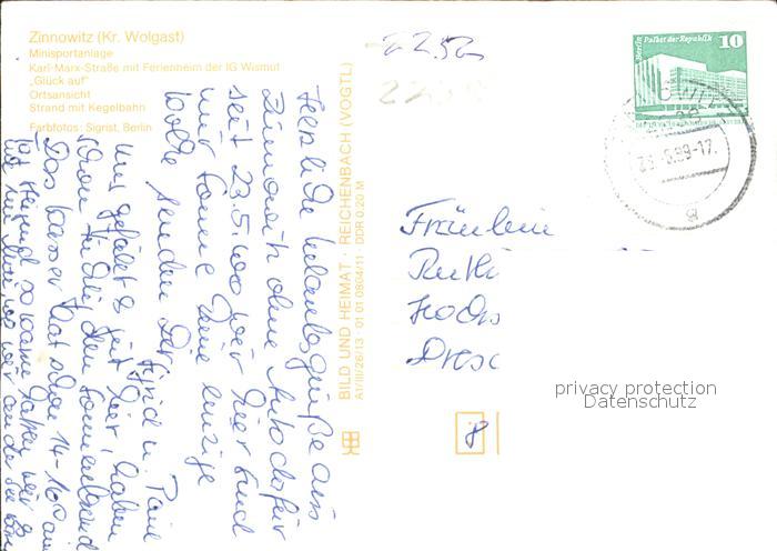 72336077 alte Postkarte Zinnowitz Ostseebad Minisportanlage Karl Marx Strasse Ferienheim IG Wismut Strand Kegelbahn postalisch gelaufen Erhaltung siehe scans KatCode: 11110013059107