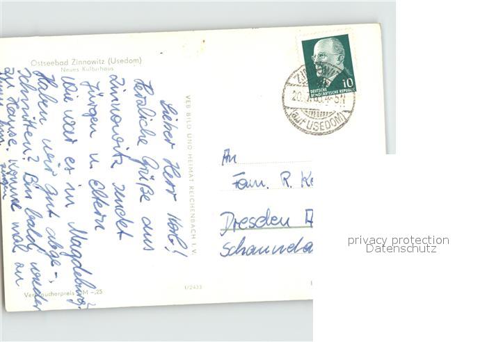 72413255 alte Postkarte Zinnowitz Ostseebad Neues Kulturhaus postalisch gelaufen Erhaltung siehe scans KatCode: 11110013059107