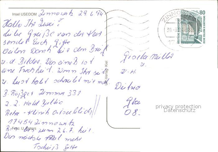 72336082 alte Postkarte Zinnowitz Ostseebad Park Strand Boot Ferienheim Gaststaette Kirche postalisch gelaufen Erhaltung siehe scans KatCode: 11110013059107