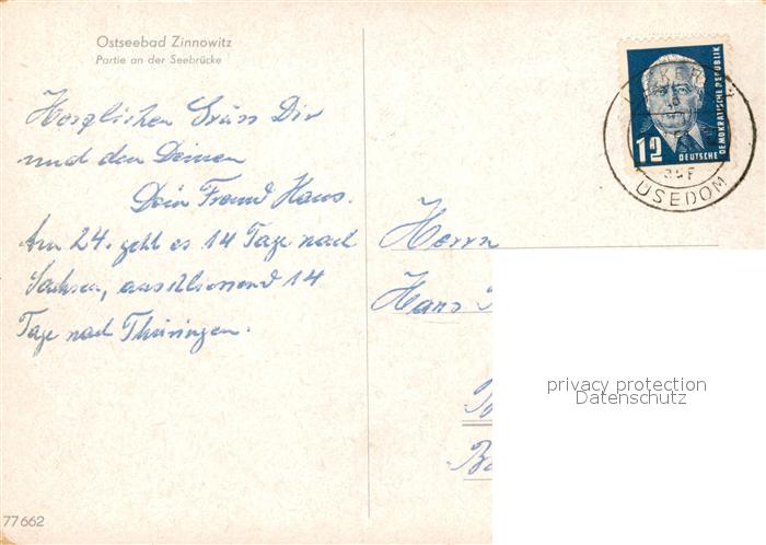 73073400 alte Postkarte Zinnowitz Ostseebad Partie an der Seebruecke postalisch gelaufen Erhaltung siehe scans [FriedD77] KatCode: 11110013059107