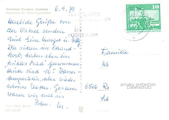 73104394 alte Postkarte Zinnowitz Ostseebad Promenade der Voelkerverstaendigung postalisch gelaufen Erhaltung siehe scans [KathaD81] KatCode: 11110013059107