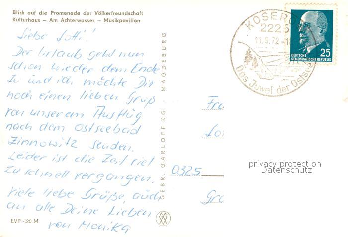 73100643 alte Postkarte Zinnowitz Ostseebad Promenade Voelkerfreundschaft Kulturhaus Achterwasser Musikpavillon postalisch gelaufen Erhaltung siehe scans [KathaD81] KatCode: 11110013059107