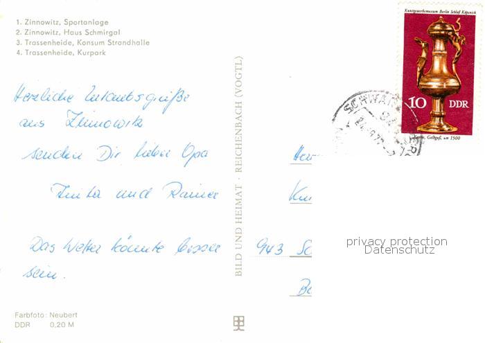 72639033 alte Postkarte Zinnowitz Ostseebad Sportanlage Haus Schmirgal Trassenheide Konsum Strandhalle postalisch gelaufen Erhaltung siehe scans [NatalD47] KatCode: 11110013059107