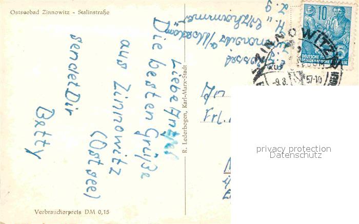 72650821 alte Postkarte Zinnowitz Ostseebad Stalinstrasse postalisch gelaufen Erhaltung siehe scans [FriedD77] KatCode: 11110013059107
