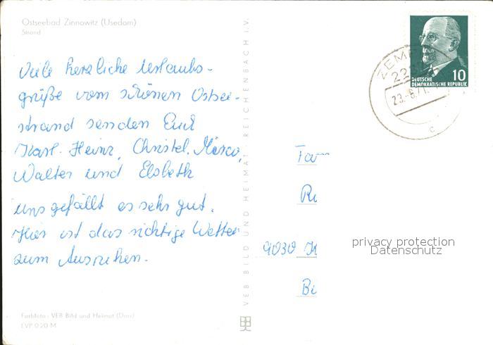 72418373 alte Postkarte Zinnowitz Ostseebad Strand postalisch gelaufen Erhaltung siehe scans KatCode: 11110013059107