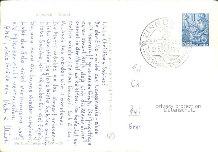 72368323 alte Postkarte Zinnowitz Ostseebad Strand postalisch gelaufen Erhaltung siehe scans KatCode: 11110013059107