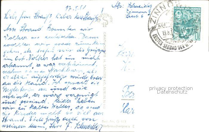 72361913 alte Postkarte Zinnowitz Ostseebad Strand postalisch gelaufen Erhaltung siehe scans KatCode: 11110013059107