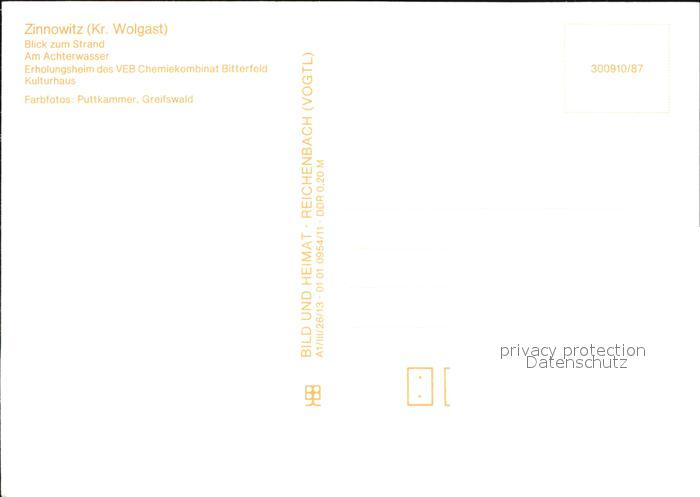 72550645 Zinnowitz Ostseebad Strand Achterwasser Erholungsheim VEB Chemiekombinat Bitterfeld postalisch nicht gelaufen Erhaltung siehe scans [KathaD79] KatCode: 11110013059107