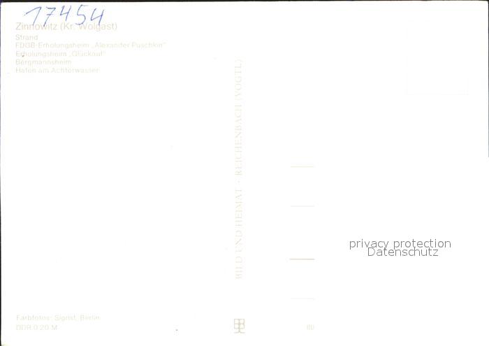 72279780 Zinnowitz Ostseebad Strand FDGB Erholungsheim Puschkin Glueckauf Bergmannsheim Hafen Achterwasser postalisch nicht gelaufen Erhaltung siehe scans KatCode: 11110013059107