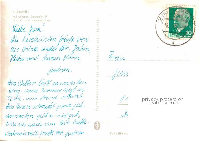 72630271 alte Postkarte Zinnowitz Ostseebad Strand Kulturhaus postalisch gelaufen Erhaltung siehe scans [LiesaD40] KatCode: 11110013059107