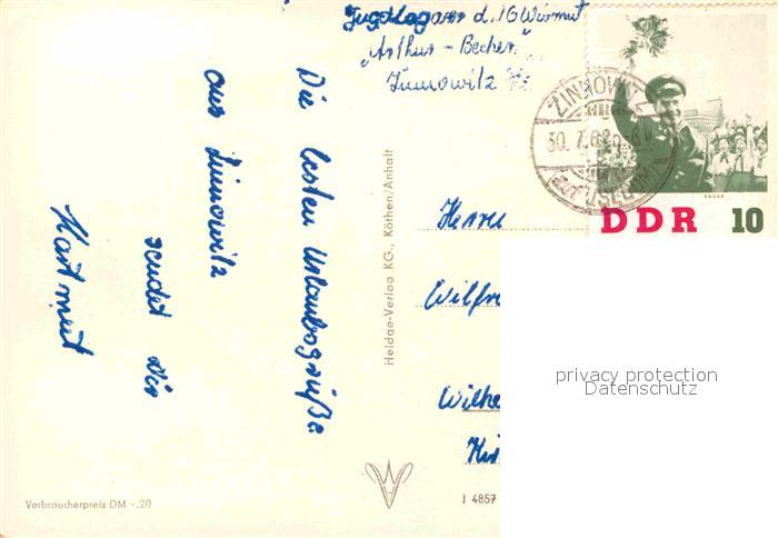 72703563 alte Postkarte Zinnowitz Ostseebad Strand Musikpavillon Hafen Kurheim Wappen postalisch gelaufen Erhaltung siehe scans [FriedD77] KatCode: 11110013059107