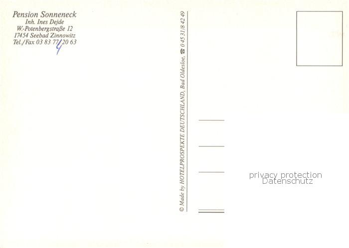 73759023 Zinnowitz Ostseebad Strand Pension Sonneneck postalisch nicht gelaufen Erhaltung siehe scans [WerneD78] KatCode: 11110013059107