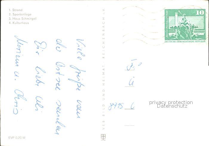 72336087 alte Postkarte Zinnowitz Ostseebad Strand Sportanlage Haus Schmirgal Kulturhaus postalisch gelaufen Erhaltung siehe scans KatCode: 11110013059107