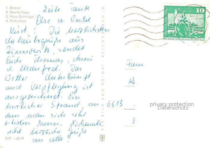 73015343 alte Postkarte Zinnowitz Ostseebad Strand Sportanlage Haus Schmirgal Kulturhaus postalisch gelaufen Erhaltung siehe scans [WerneD78] KatCode: 11110013059107
