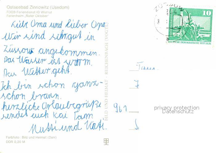 72668671 alte Postkarte Zinnowitz Ostseebad Strand und Ferienheim Roter Oktober IG Wismut postalisch gelaufen Erhaltung siehe scans [LiesaD40] KatCode: 11110013059107