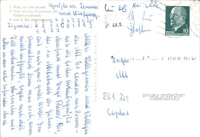 72401725 alte Postkarte Zinnowitz Ostseebad Strandpartie Promenade Am Achterwasser postalisch gelaufen Erhaltung siehe scans KatCode: 11110013059107