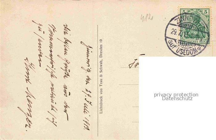 34145281 alte Postkarte ZINNOWITZ Ostseebad Strandpartie Segelboot Ansicht vom Meer aus postalisch gelaufen Erhaltung siehe scans [FriedD77] KatCode: 11110013059107