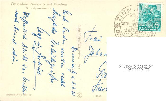 73675102 alte Postkarte Zinnowitz Ostseebad Strandpromenade postalisch gelaufen Erhaltung siehe scans [FriedD77] KatCode: 11110013059107