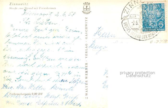 43498695 alte Postkarte Zinnowitz Ostseebad Strasse zum Strand mit Ferienheimen postalisch gelaufen Erhaltung siehe scans [LiesaD40] KatCode: 11110013059107