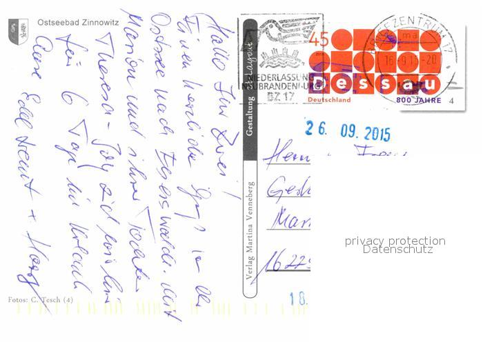 72782762 alte Postkarte Zinnowitz Ostseebad Strassenpartie Strand Seebruecke Cafe postalisch gelaufen Erhaltung siehe scans [WerneD78] KatCode: 11110013059107