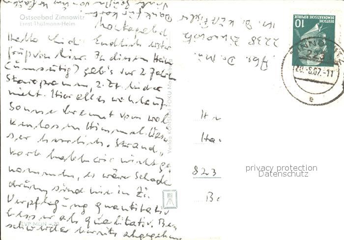 72060564 alte Postkarte Zinnowitz Ostseebad Usedom Ernst Thaelmann Heim postalisch gelaufen Erhaltung siehe scans KatCode: 11110013059107