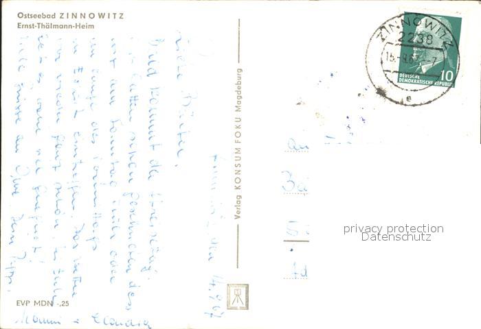 72180184 alte Postkarte Zinnowitz Ostseebad Usedom Ernst Thaelmann Heim postalisch gelaufen Erhaltung siehe scans KatCode: 11110013059107