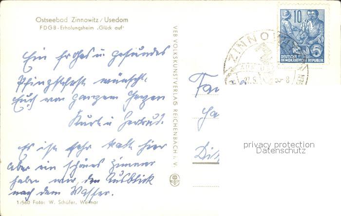 72010168 alte Postkarte Zinnowitz Ostseebad Usedom FDGB Erholungsheim Glueck auf postalisch gelaufen Erhaltung siehe scans KatCode: 11110013059107