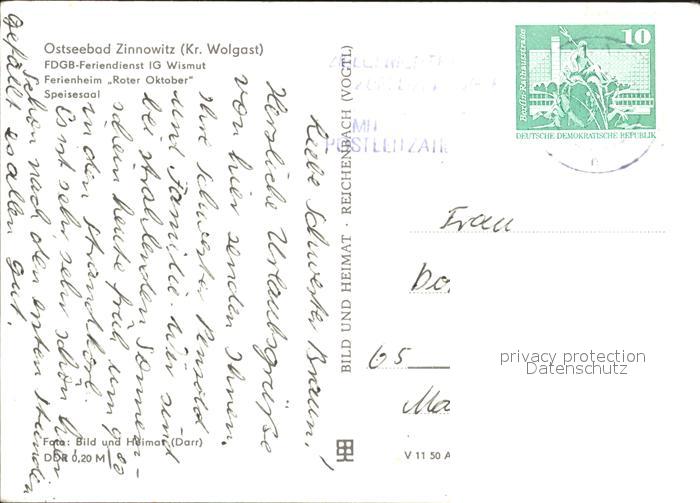 72060654 alte Postkarte Zinnowitz Ostseebad Usedom FDGB Feriendienst IG Wismut Ferienheim Roter Oktober Speisesaal postalisch gelaufen Erhaltung siehe scans KatCode: 11110013059107