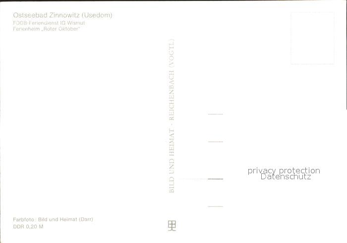 72137482 Zinnowitz Ostseebad Usedom FDGB Feriendienst IG Wismut Ferienheim Roter Oktober Strand postalisch nicht gelaufen Erhaltung siehe scans KatCode: 11110013059107
