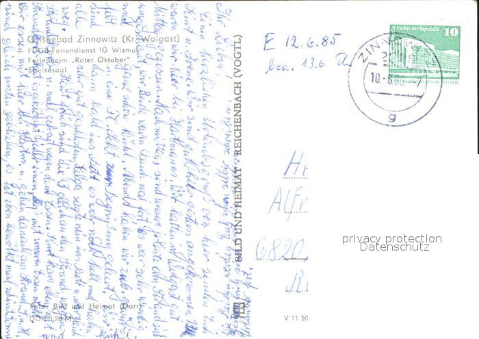 72120050 alte Postkarte Zinnowitz Ostseebad Usedom FDGB Ferienheim Roter Oktober Speisesaal postalisch gelaufen Erhaltung siehe scans KatCode: 11110013059107