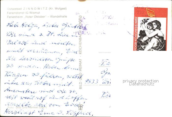 72043154 alte Postkarte Zinnowitz Ostseebad Usedom Ferienheim Roter Oktober Wandelhalle postalisch gelaufen Erhaltung siehe scans KatCode: 11110013059107