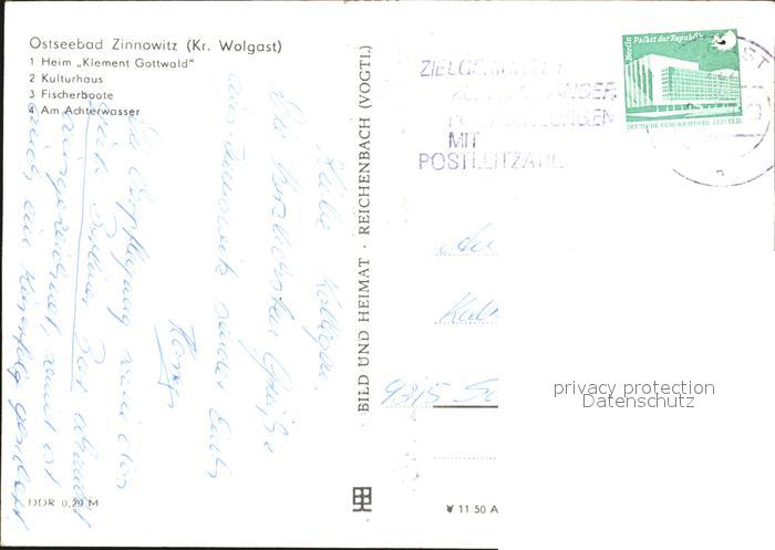 72391965 alte Postkarte Zinnowitz Ostseebad Usedom Kulturhaus Fischerboote Achterwasser postalisch gelaufen Erhaltung siehe scans KatCode: 11110013059107