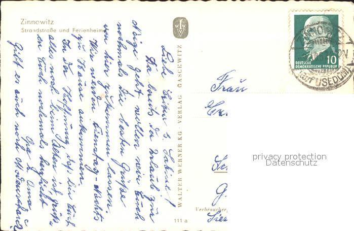 71928254 alte Postkarte Zinnowitz Ostseebad Usedom Strandbadstrasse und Ferienheim postalisch gelaufen Erhaltung siehe scans KatCode: 11110013059107