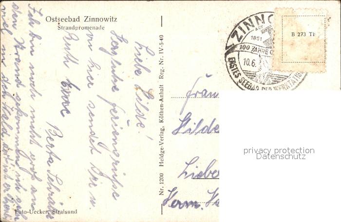 72026381 alte Postkarte Zinnowitz Ostseebad Usedom Strandpromenade postalisch gelaufen KatCode: 11110013059107